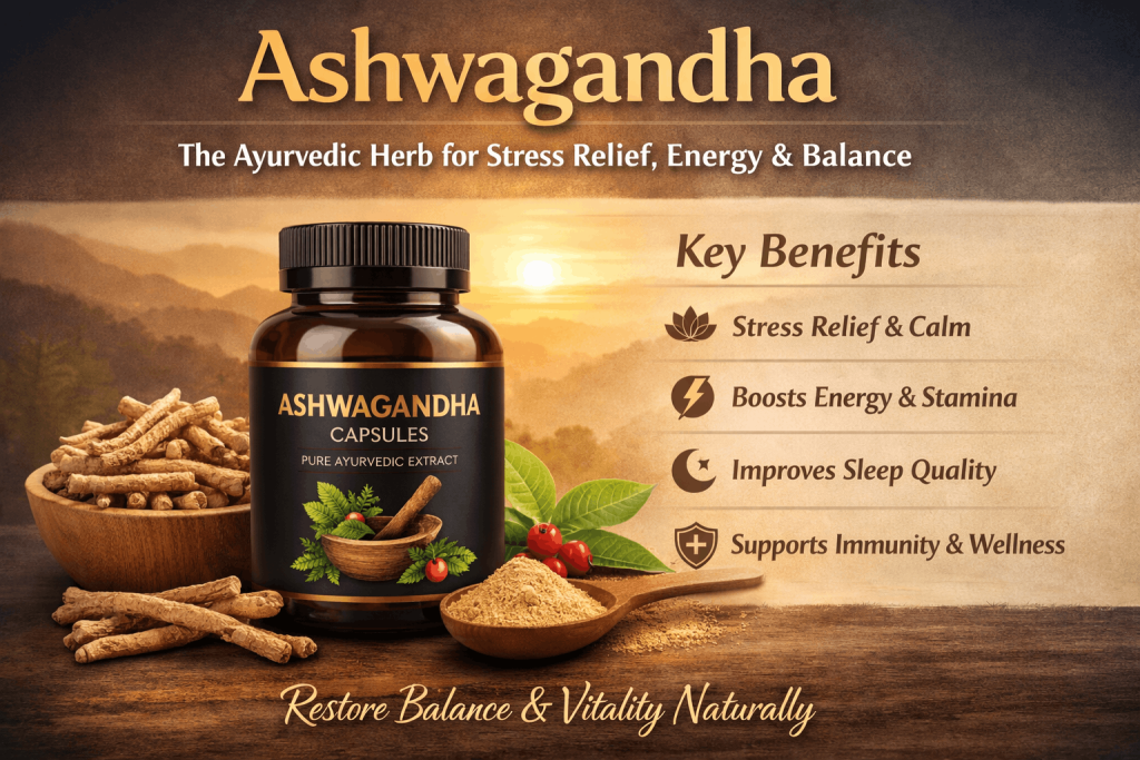 Ashwagandha is one of the most trusted herbs in Ayurveda, known for supporting stress management, energy, immunity, and mental balance.