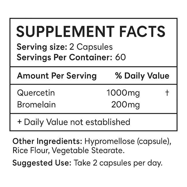 A synergistic blend of Quercetin, a powerful flavonoid, and Bromelain, a natural enzyme from pineapple, formulated to support immune response, inflammation control, and respiratory health.