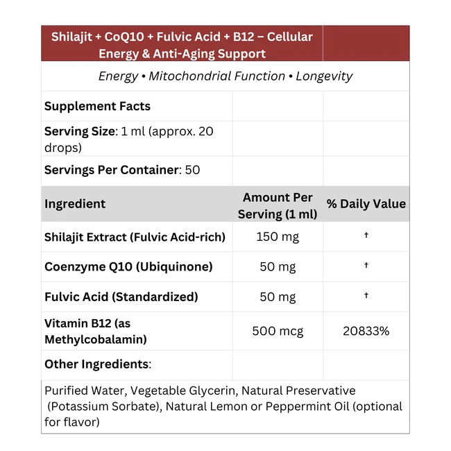 Shilajit + CoQ10 + Fulvic Acid + B12 – Cellular Energy & Anti-Aging Support